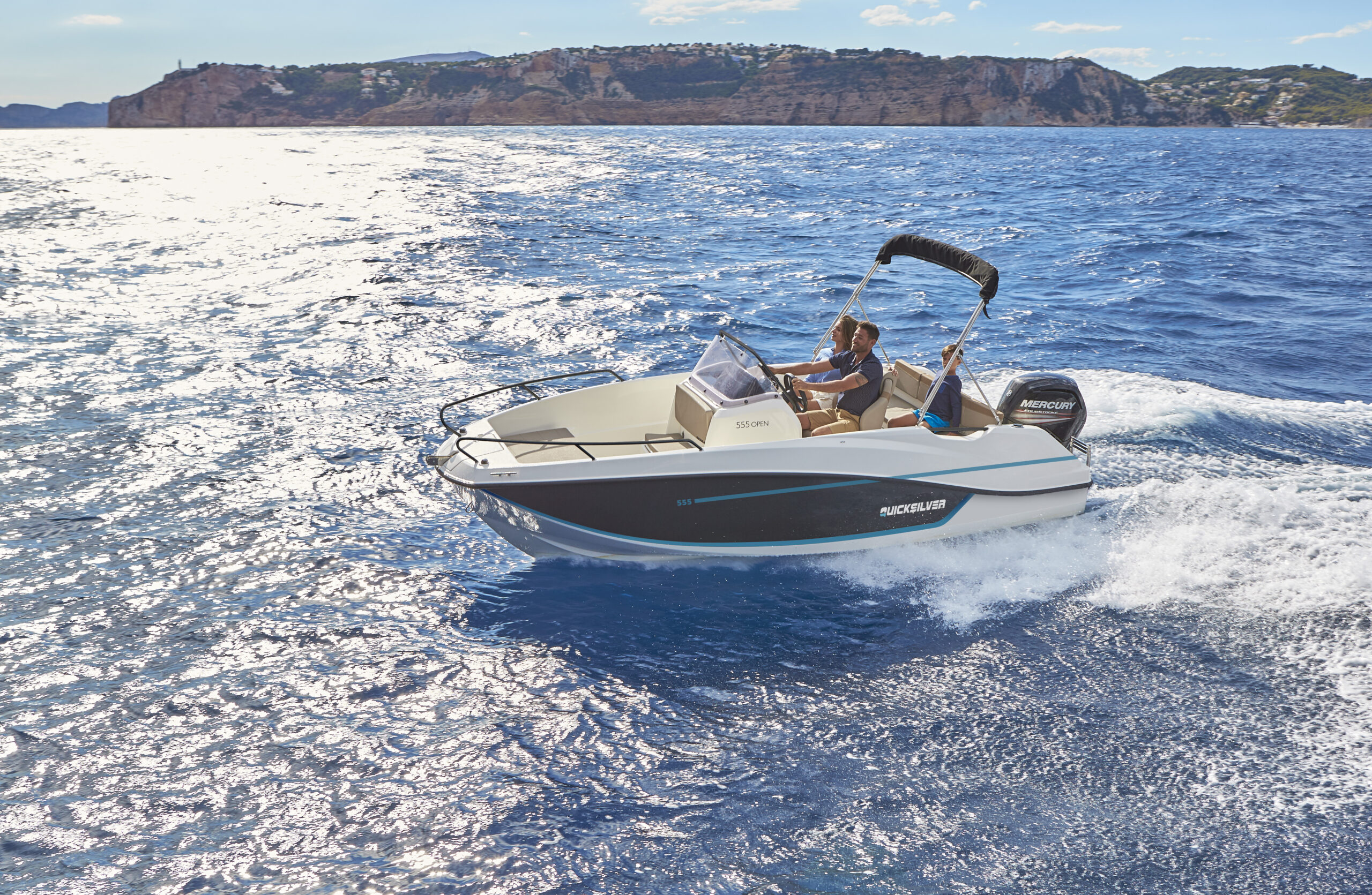 La Quiscksilver Activ 555 Open con Merury F 80cv te permitirá disfrutar del mar, del río o del pantano, solo o en buena compañía. Tiene 5,47 metros de eslora, capacidad para seis personas y se puede llevar con la Licencia de Navegación.