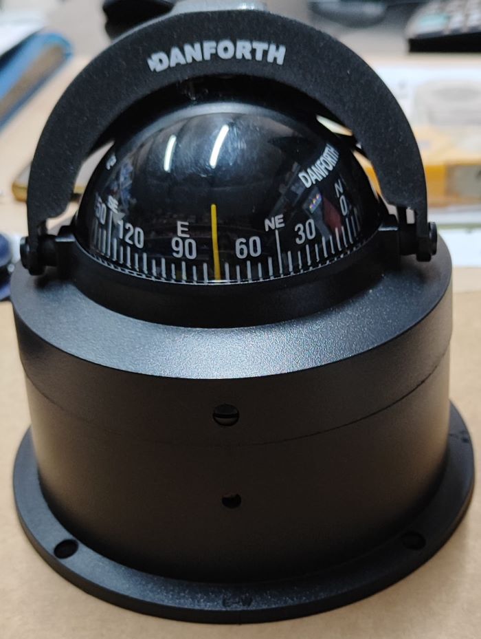 Compás Danforth, esencial para la navegación marítima, proporciona una referencia de dirección constante basada en el magnetismo terrestre, permitiendo al navegante mantener un rumbo preciso incluso sin visibilidad
