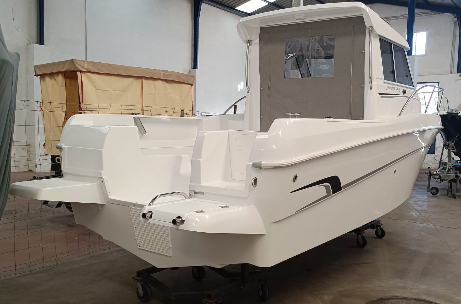 La Javana 650 viene equipada con una lona de cierre patronera, dirección hidráulica y plataforma de baño. El precio incluye transporte hasta Huelva. (IVA NO INCLUIDO).