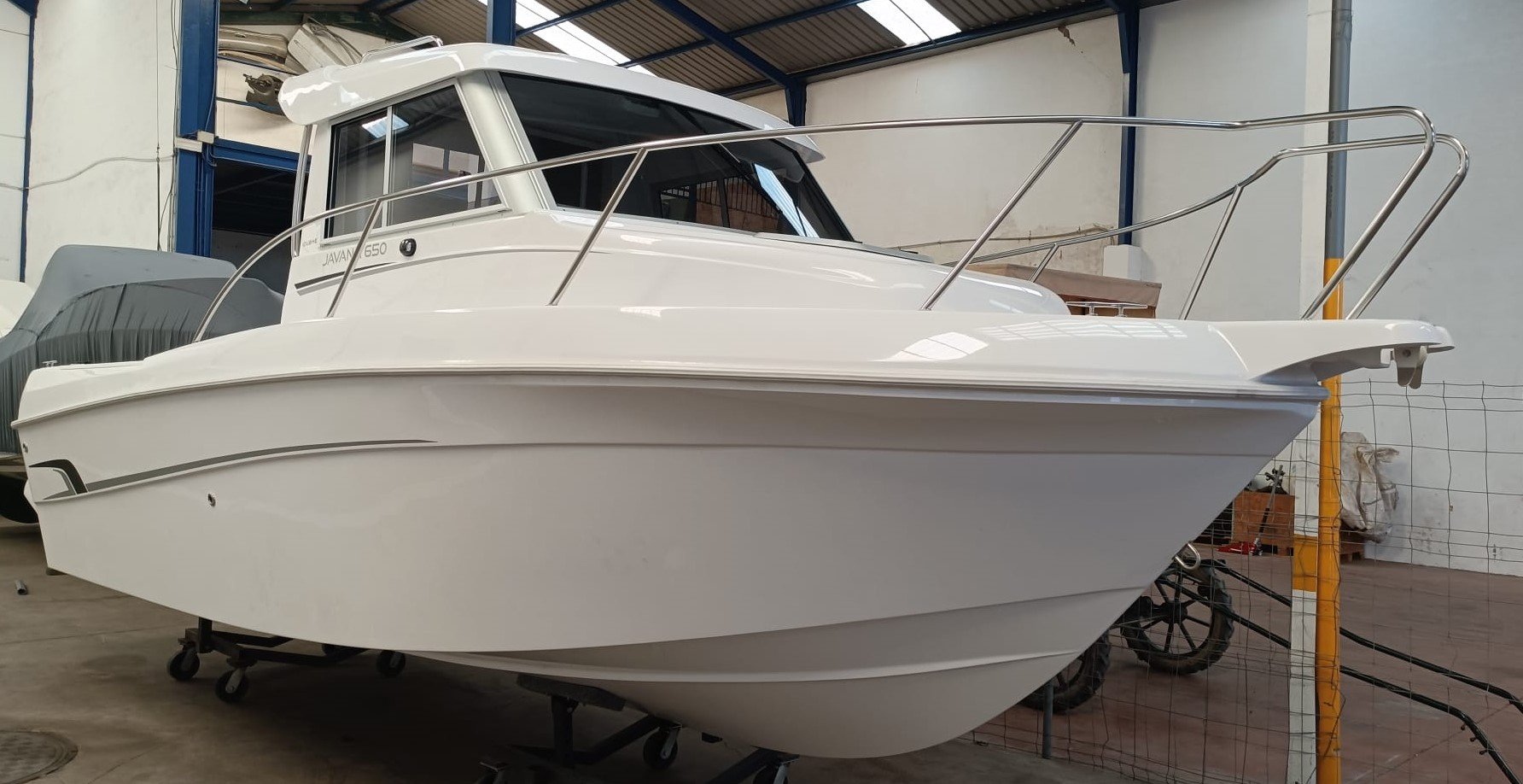 JAVANA 650 MOTOR MERCURY F150 (NUEVO) Lona de cierre vertical, dirección hidráulica, Plataformas de Baño, escalera de baño, relojería, mando, cables, hélice, montaje batería, Apto para licencia federativa (Titulín). TRANSPORTE INCLUIDO A HUELVA (PRECIO IVA NO INCLUIDO)